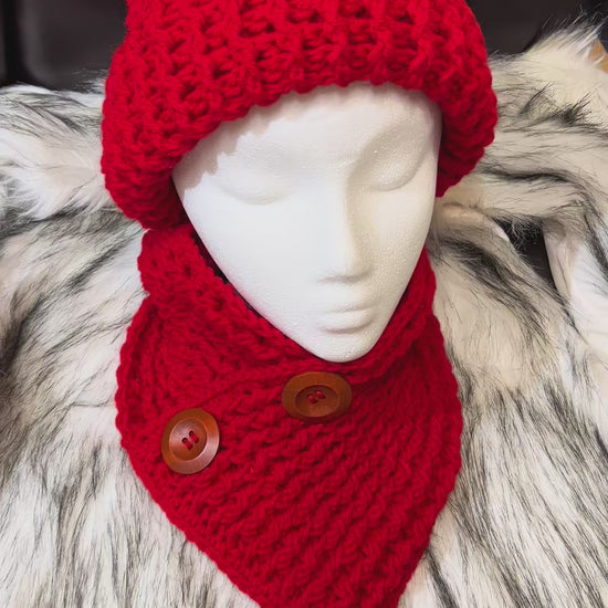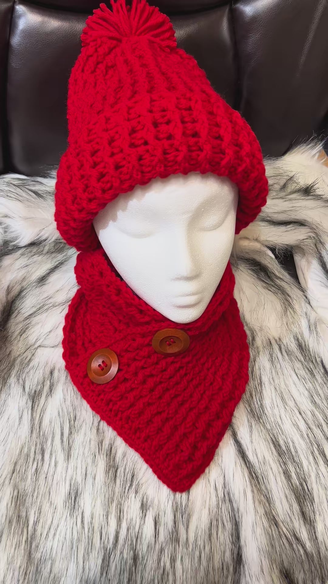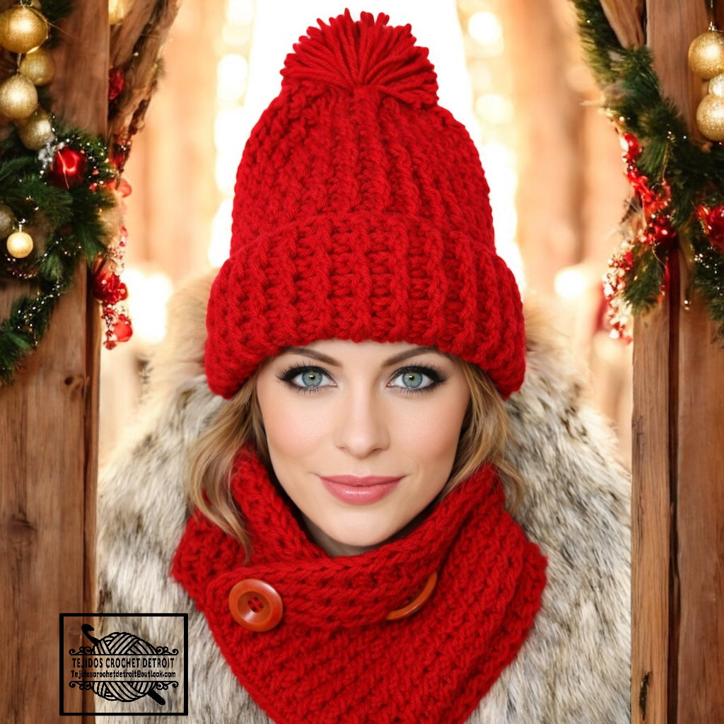 1 gorro y 1 bufanda cuello V cerrada para invierno Unitalla tejida a mano se estira y se ajusta perfecto al cuello.Los botones son de adorno. los botones no se abren.